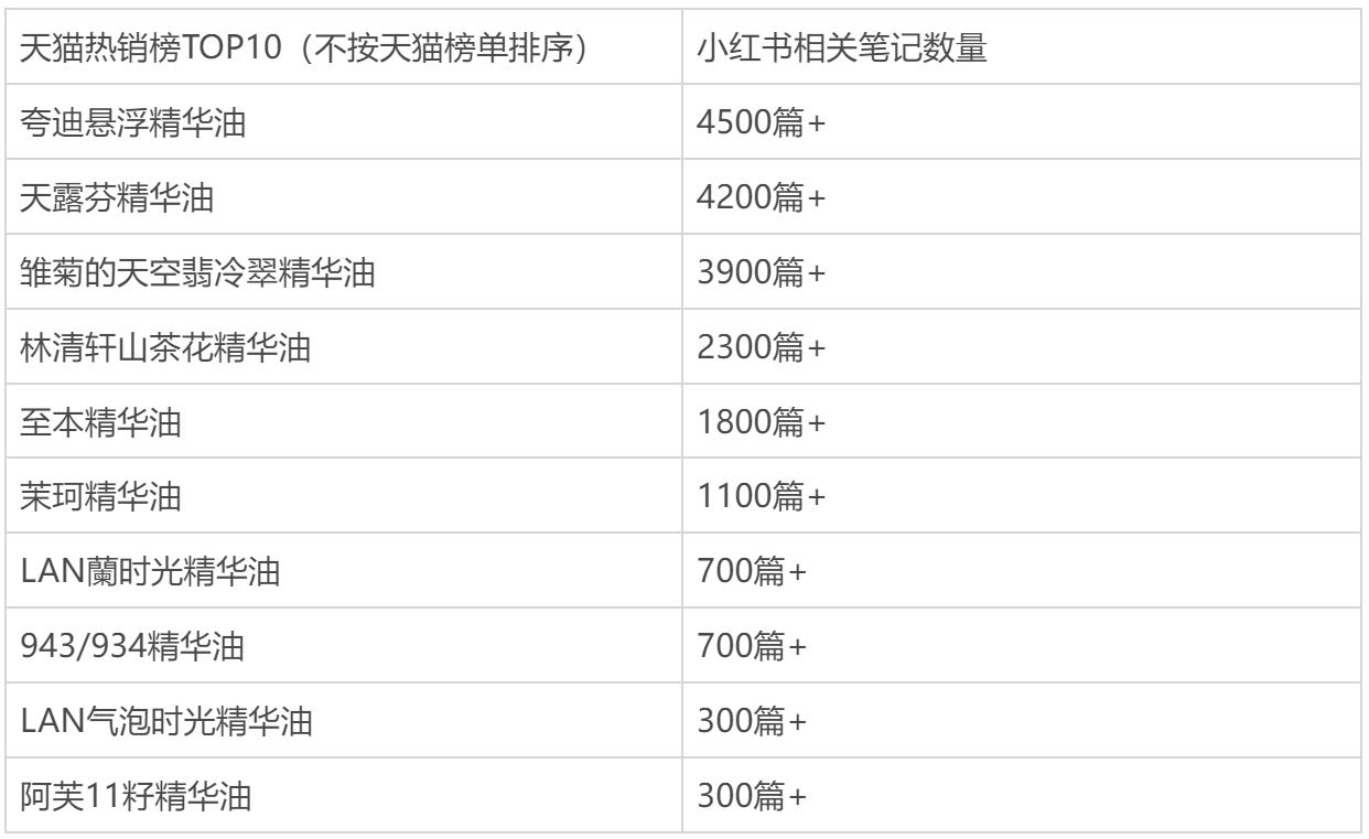 目前,从小红书精华油相关笔记来看,德国天露芬的相关笔记在这十大单品中位居前二。
