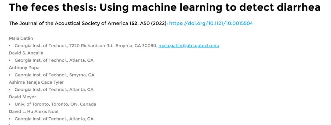 隶属于美国佐治亚理工学院的研究人员发表论文The feces thesis: Using machine learning to detect diarrhea,论文中提出了一个机器学习模型,该模型利用安装在厕所的传感器,来记录排便的声音,以此判断一个人是否存在腹泻症状。