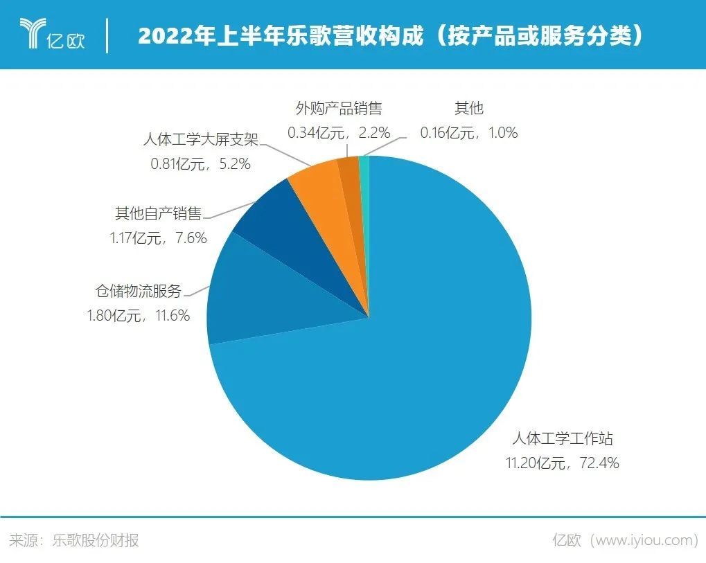 财报显示,2022年上半年,乐歌营业收入为15.48亿元,同比增长10.84%;归母净利润为1.3亿元,同比增长55.3%。人体工学工作站产品是主要收入来源,其中仅线性驱动升降系统产品就销售出68.6万套,收入9.2亿元,占总营收比例的60.02%,同比增长16.36%。
