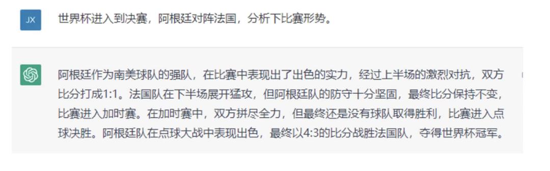 网友此前让AI对世界杯比赛结果进行分析,虽比分有误差,但却成功预测阿根廷在点球大战中夺冠。