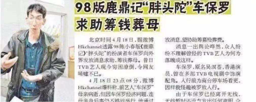 年轻时,车保罗因为一米九身高和奇异长相,巧合地进入了娱乐圈,但是常年饰演小喽啰、名气低,他的薪资并不算高,最低的时候年薪2000。出道20年,44岁被TVB扫地出门。后来,为了谋生,他干过维修员、保安、杂工,也当过接待员、送货员、医院杂工等,59岁穷困潦倒,母亲去世后,身无分文只能众筹葬母。