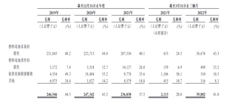 过去三年,燃料电池国产化率较低,作为发电作用主体的电堆,在双极板、催化剂、质子交换膜等关键材料上尚未实现规模量产。因此由于电堆采购自外部厂商,实际销售产品数量占比逐年提升,于此同时产品均价从20,205元降低至8,843元,公司毛利率露出了下滑的态势。