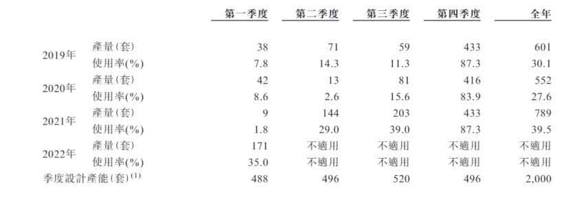 于是2019年、2020年及2021年第四季度公司在张家口生产基地的产能利用率高达87.3%、83.9%及87.3%,但前三季度均难以超过50%。