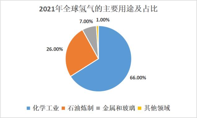 而在应用端,能源领域的氢气使用还只是凤毛麟角,氢气主要应用在化工、石油炼制、金属冶炼和玻璃生产等领域,而作用能源使用的比例尚且不足1%。在全球去碳化背景下,氢气作为燃料电池的优势会被放大,未来氢气作为能源的占比将会逐渐提升。