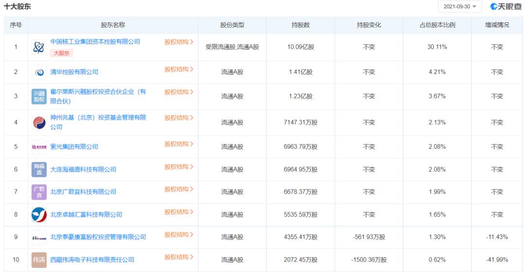 同方股份有限公司十大股东展示图 来源:天眼查