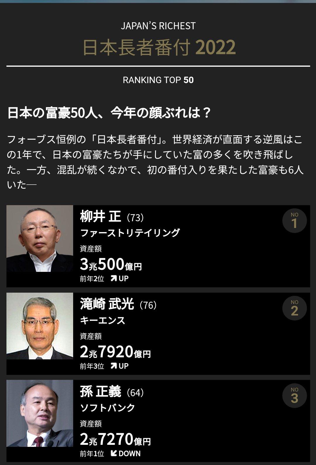 如果我们现在打开日本富豪榜单,会发现都是咱们的熟面孔。