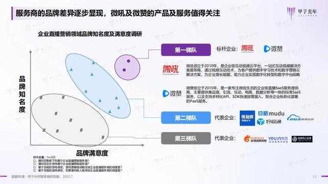 近日, 国内知名科技产业智库——甲子光年重磅推出《企业直播营销发展趋势白皮书》(下简称《白皮书》)。微赞凭借先进的营销技术,千企千面的垂直行业解决方案和成千上万的优秀案例,荣登企业直播营销领域第一梯队。
