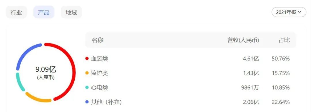 康泰医学的业绩没有向好的趋势。2021年,康泰医学血氧类产品贡献了50.76%的总收入,销售量为1030.90万台,同比减少了33.93%;销售额为4.61亿元,同比减少了47.75%;同时生产量也减少了35.31%,但库存量同比增加了30.33%。
