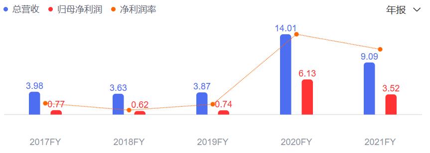 新冠造富这趟首发车进站,胡坤稳稳的坐在头等舱,一改往日的沉默,风光无限。然而好景不常在。时隔一年后,业绩现形。2021年全年,康泰医学分别实现营业收入9.09亿元和净利润3.52亿元,同比分别下降35.15%和42.56%。