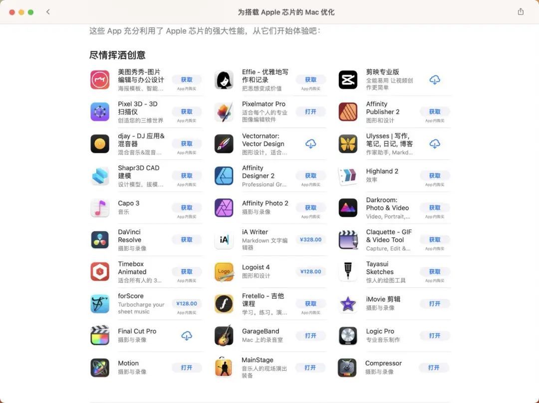 推出两年多的 M 芯片,像 Adobe 全家桶、 Chrome、微信、 Office、达芬奇、 Final Cut Pro 等常用软件都已经推出了支持 M 芯片的版本,如果你从事文字、设计、影视等方面的工作,搭载 M 芯片的 Mac 在体验方面,基本已经追上(甚至超越)之前英特尔芯片的 Mac 了。