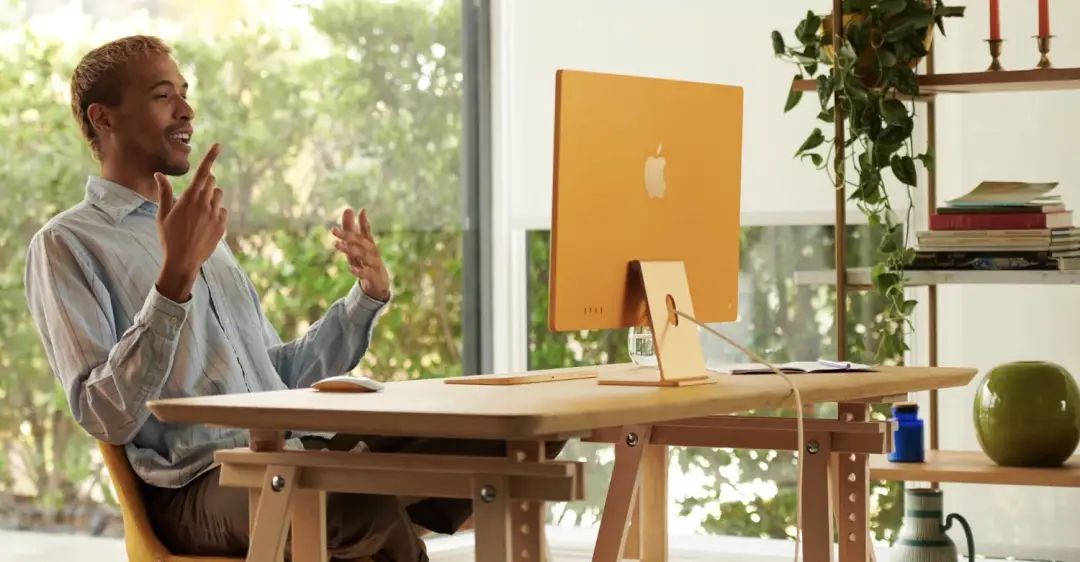 3. 颜值高,有格调。M1 版的 iMac 有绿、黄、橙、粉、紫、蓝、银 7 种配色,饱和度适中,既能展示个性,又不过分张扬。