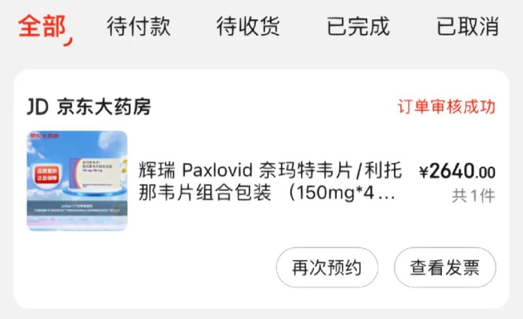 当日,市民刘言本着碰运气的心理,试了下京东大药房辉瑞Paxlovid新冠口服药的购买渠道,想要备药,然后竟然刷到了。