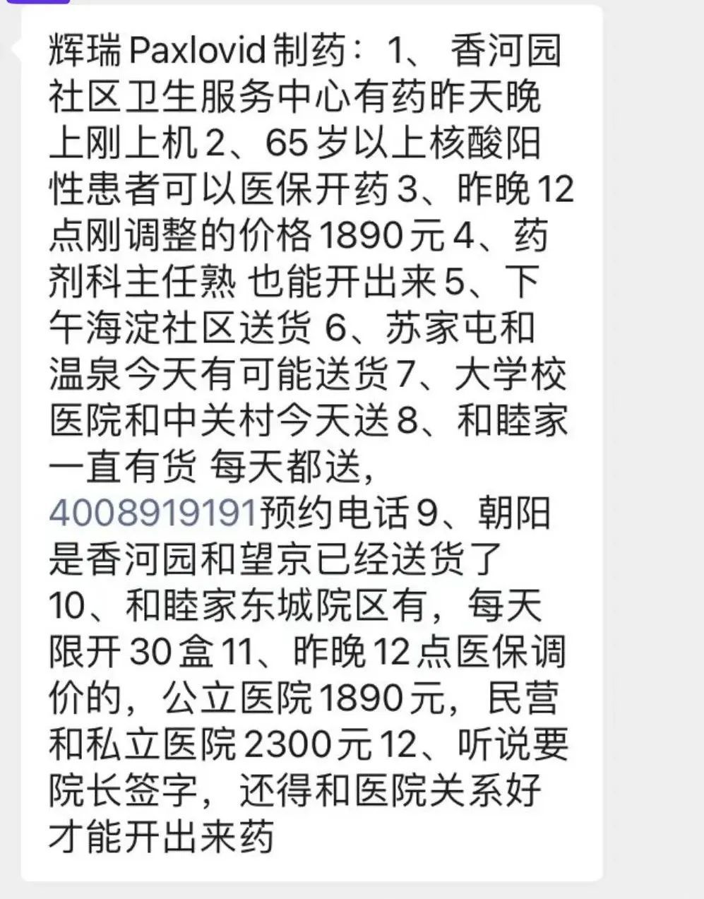 在各路信息的收集中,我们了解到,辉瑞Paxlovid新冠口服药目前市场供应紧张,医院之间要拿药存在“级差”,一些非三甲医院只能紧着大医院之后来,难以掌握什么时候能轮到自己。而一些私立医院凭借独有的渠道,获得了辉瑞的优先预售权,但药品也很容易被一扫而光。
