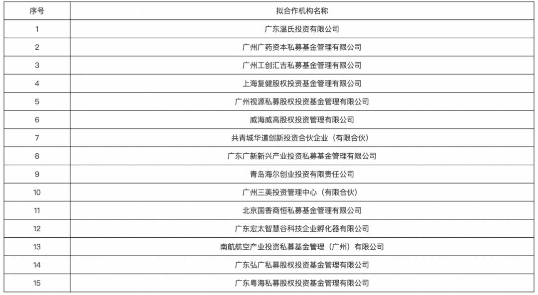 投资界-解码LP消息,近日,广州市工业和信息化局发布《关于广州市工业和信息化发展基金第三批子基金拟合作机构的公示》,本次这只母基金拟参投15支子基金,背后管理机构分别是——温氏投资、广药资本、复健资本、威高资本、赛意产业基金等等。