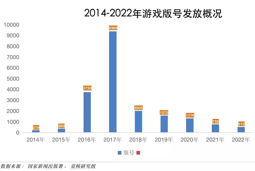 根据竞核统计,从2017年开始,国内游戏版号就呈逐年下降趋势。相比2021年,今年游戏版号总量下滑了约32%,与2020年相比更是“拦腰折断”。这多少会影响游戏公司推进新项目,进而造成新游市场供给不足。