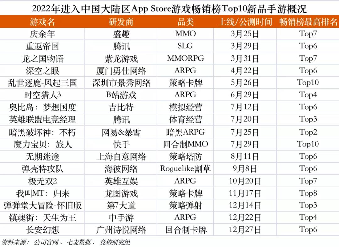 换句话说,2022年新品手游的实际爆款率不到1%。竞核认为,这其实也从侧面反应了一个好的现象。即纵使新品手游供给不足,精品化、内容为王仍成为主流,这表明中国游戏市场及用户群体也在不断成熟。