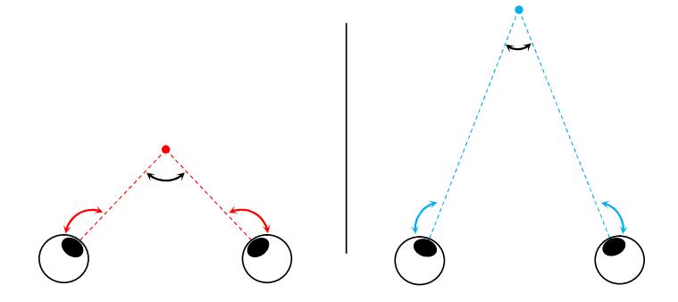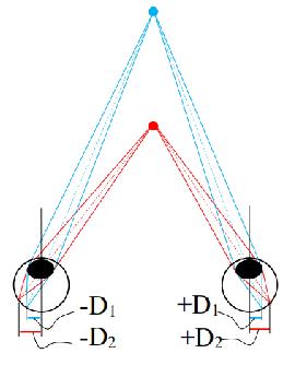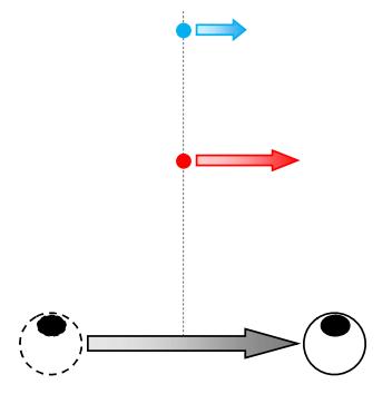 双目汇聚示意图移动视差(Motion Parallax):当移动头部来观察场景时,场景中的物体会在视野中产生相反方向的移动,但远近不同的物体在人眼中产生的位移大小会不同。