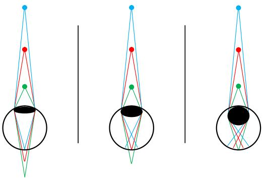移动视差示意图聚焦模糊(Focus):为了看清楚远近不同的物体,人眼通过收缩或舒张睫状肌可以改变晶状体的形状,从而聚焦在远近不同的平面上,类似于相机的聚焦功能。