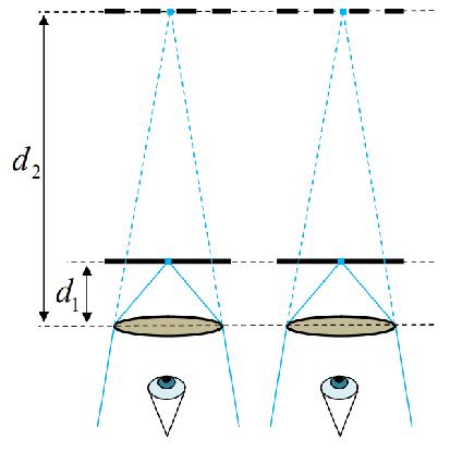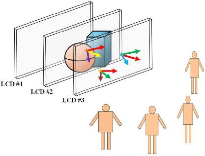 多层液晶光场显示原理示意图中科院自动化所的曹煊博士2017年采用 ASUS VG278H 液晶显示器作为原始液晶面板搭建了三层液晶光场显示样机,用 DirectX 开发了多层液晶驱动程序,并成功显示了多个不同光场内容。