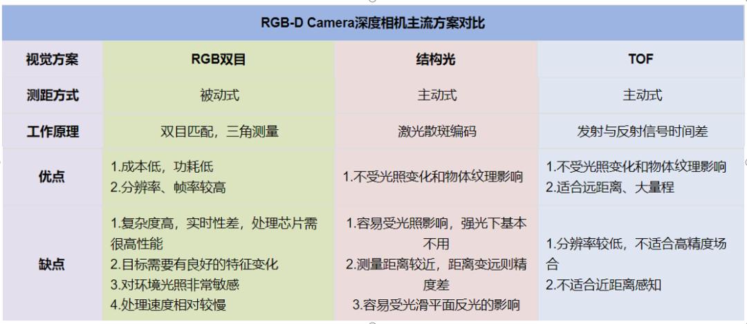 深度相机有以下几种主流方案:双目,结构光,TOF。