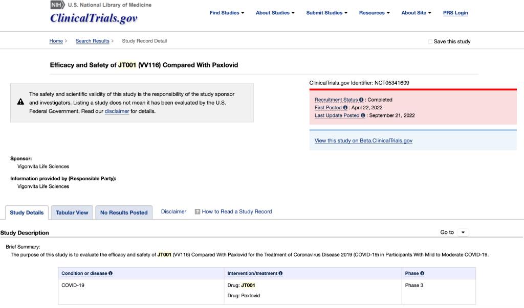 在2021年12月30日,乌兹别克斯坦就对VV116实施紧急授权,批准VV116在乌兹别克斯坦的上市。但中国是一个14亿人口的大国,本着对人民负责,对生命负责的精神,中国药监部门要求,VV116在完成“头对头”试验后,继续进行安慰剂对照试验。