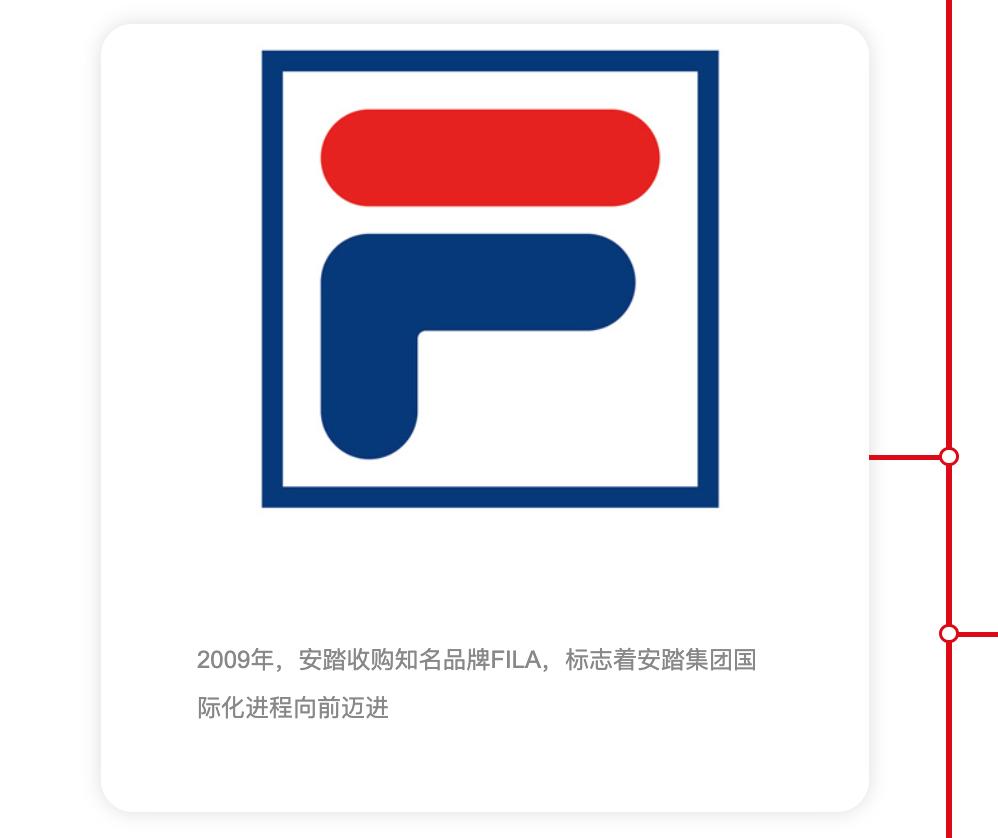 2009年,安踏从百丽国际手中收购FILA在中国地区的商标使用权和经营权,这一举动成为安踏发展的转折点。