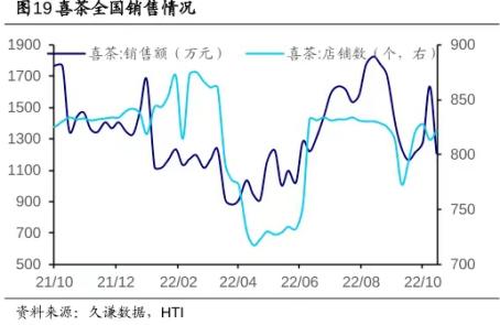 (喜茶全国销售额及店铺数变化,来源:久谦、HTI)