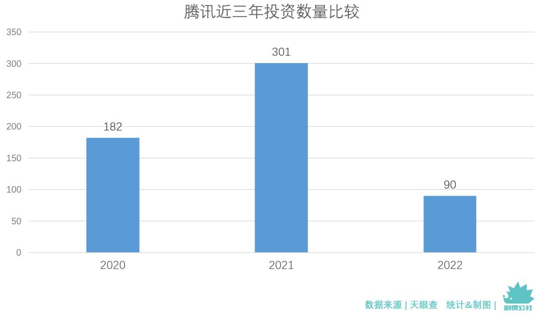 2022年初,刺猬公社曾盘点腾讯在2021年的对外投资状况。 全年公开对外投资301次,平均每1.2天出手一次,出手次数同比上涨65.4%。