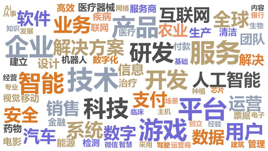 为进一步了解腾讯在2022年的投资动向,刺猬公社将其2022年投资的90家企业介绍整理成一份1万多字的文档,并对其进行切词分析和词频统计,得到的关键词分布如下(已剔除与业务无关词汇,仅展示出现频次>=5的词汇;出现频次越高,字体越大)。