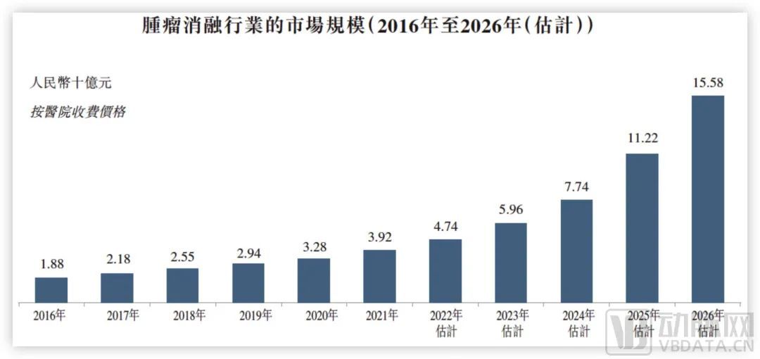 据弗若斯特沙利文的数据,2016年~2021年,中国肿瘤消融行业的市场规模(按医院收费价格计算)由人民币18.8亿元增至人民币39.2亿元。鉴于国内新增肿瘤患者数量的不断增加,以及消融疗法在医院普及程度的提高,越来越多医生患者接受微创手术,消融治疗逐渐成为肿瘤的常用治疗方法之一。