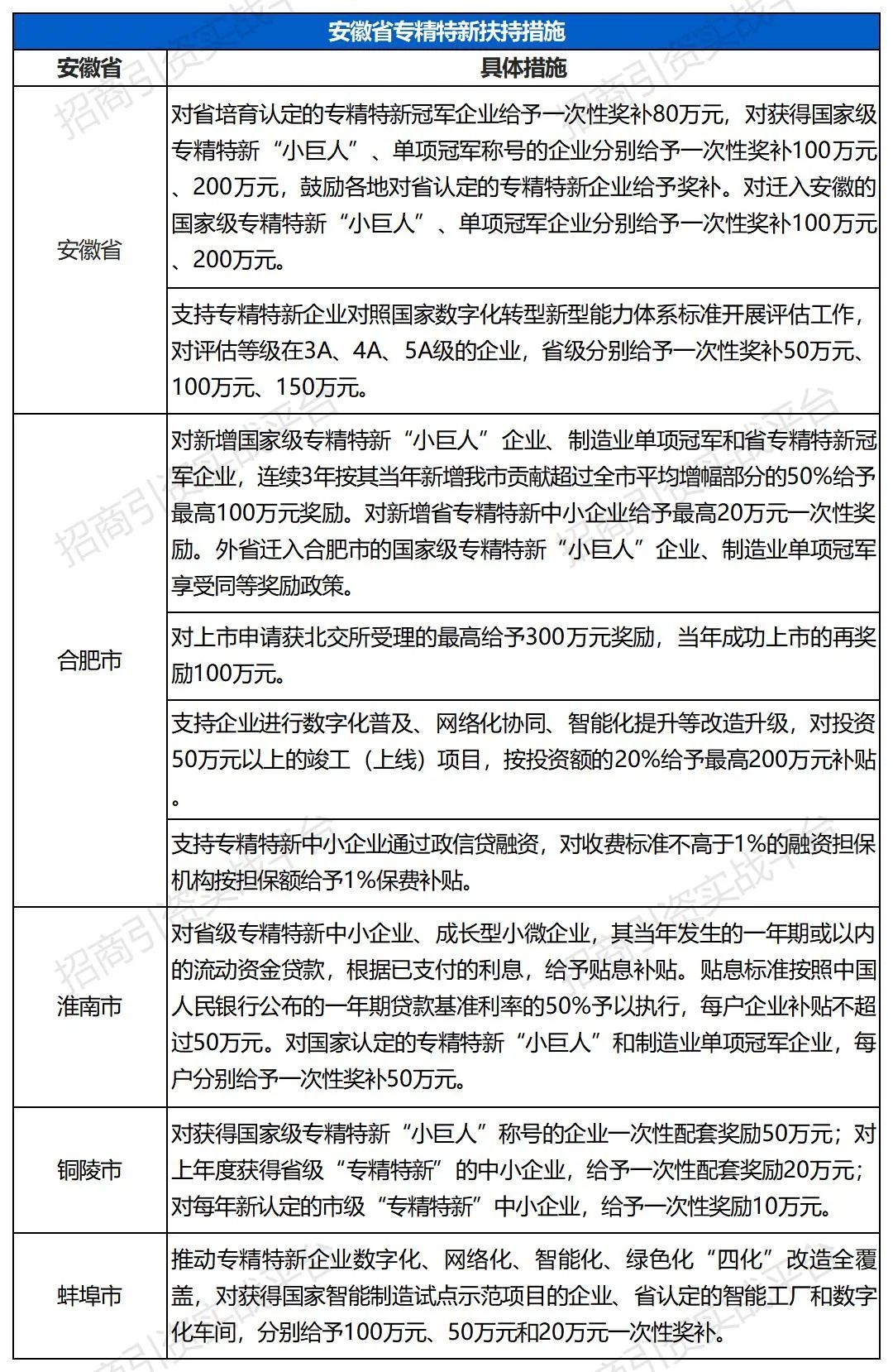 2013年以来,安徽省持续实施专精特新中小企业培育工程,通过梯次培育、叠加奖补等方式,已累计培育3218户省级专精特新中小企业,一半以上的企业深耕细分市场10年以上;争创477户专精特新“小巨人”企业,占全国的5.3%,数量居全国第7位。今年前三季度,安徽省专精特新中小企业户均主营业务收入为2.1亿元,同比增长11%。当前,安徽集聚了安徽龙磁科技股份有限公司、合肥国轩电池材料有限公司、科希曼电器有限公司、合肥海源机械有限公司等国家级专精特新“小巨人”企业。