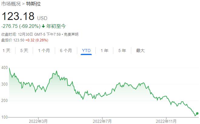 特斯拉今年累跌近70%(图片来源:雅虎财经)