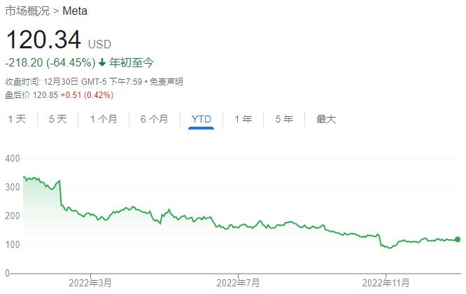 Meta今年累跌64.45%(图片来源:雅虎财经)