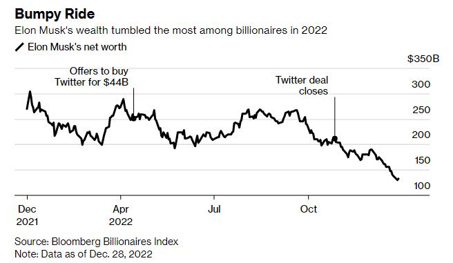 马斯克2022年财富“腰斩”