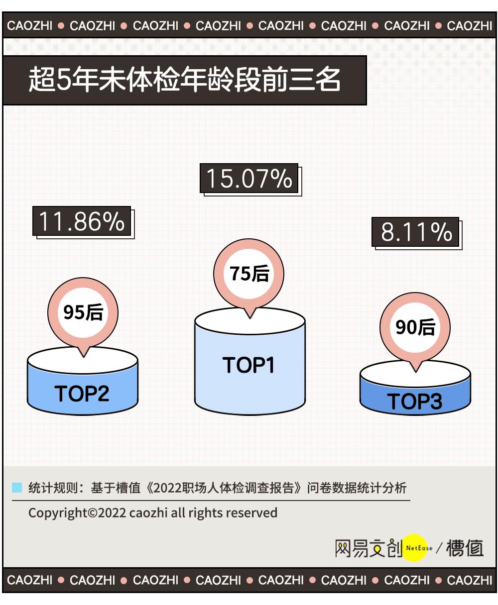 这里要对75后的朋友们提出批评,有15%的75后,已经超过5年以上没有体检过。