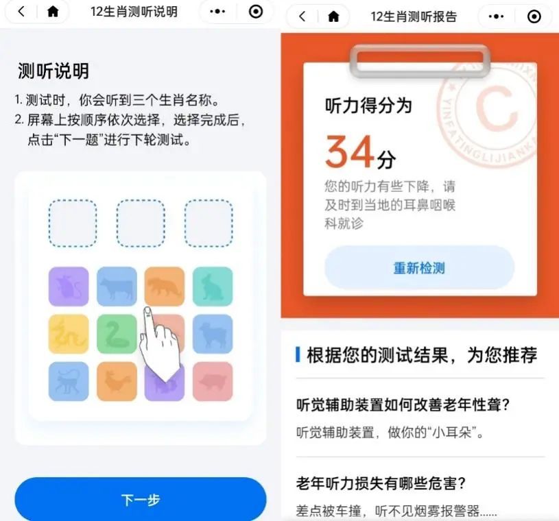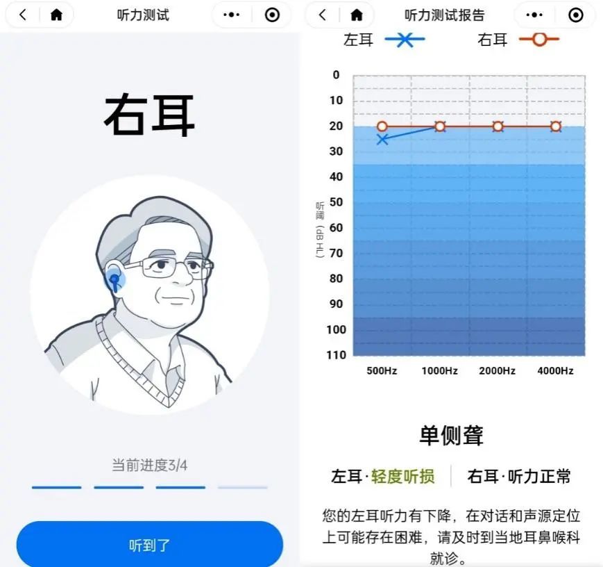 2、“银发听力健康小程序”:听力筛查+听损模拟