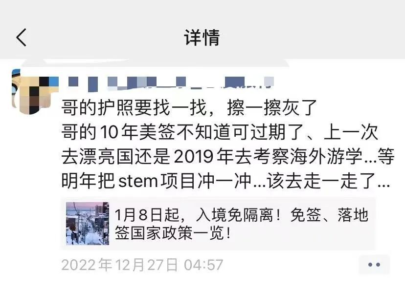 去年12月27日凌晨4点多,我刷到了携程CEO孙洁发的一条朋友圈信息,看到入境免隔离的消息,一下子就觉得搁置三年的游学项目重新获得了想象空间,打算今年带着STEM项目先把美国游学搞起来。