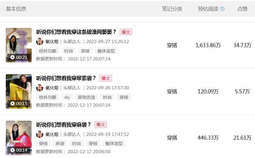 不过数据效果不太稳定,有时能获得几千赞,但有时只有几百赞。放在小红书千千万万博主里,氧化菊并不起眼。