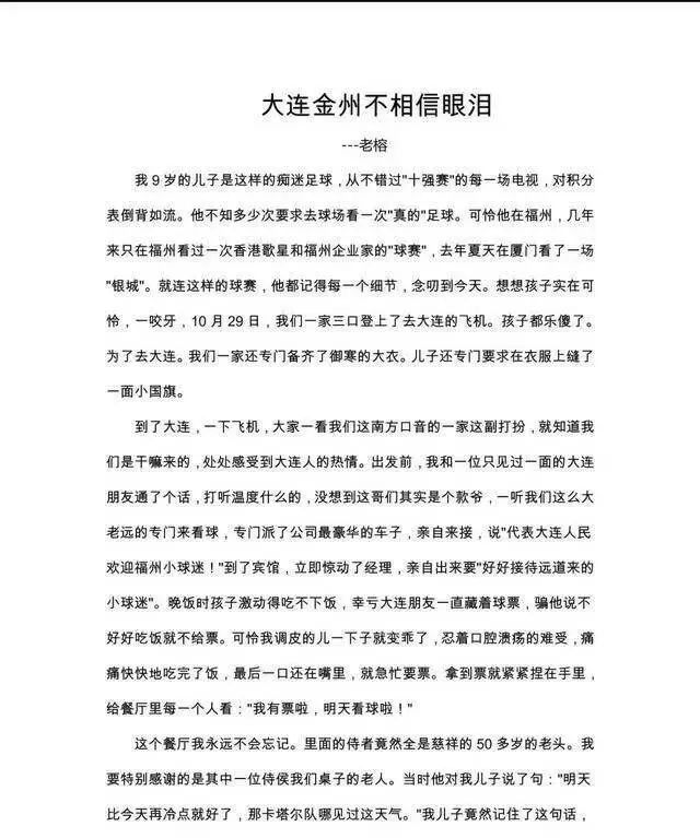 1997 年,中国国家男子足球队兵败十强赛后,已是资深网民的球迷老榕( 王俊涛) 在四通利方体育沙龙( 现新浪网体育沙龙) 上发表了一篇题为《大连金州不相信眼泪》的随笔文章,一下子引来了成千上万的跟帖,48 小时内获得数万点击量,并被其他网站疯狂转载。