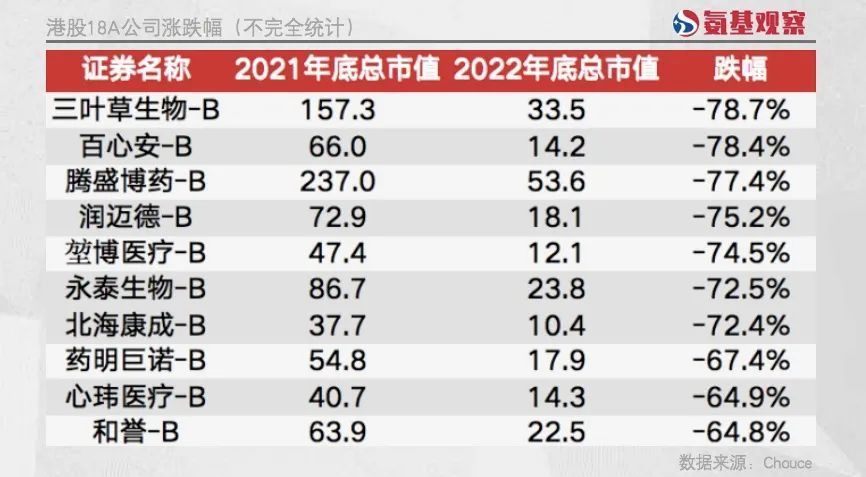 也就是说,股价腰斩是人均水平;整个18A板块市值则蒸发了近3000亿港币。