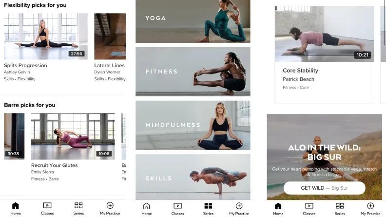 除此之外,市面上也有很多瑜伽App。比如全球最大的免费碎片化瑜伽练习app Daily yoga以及Alo yoga旗下的专业瑜伽app Alo Moves 等。