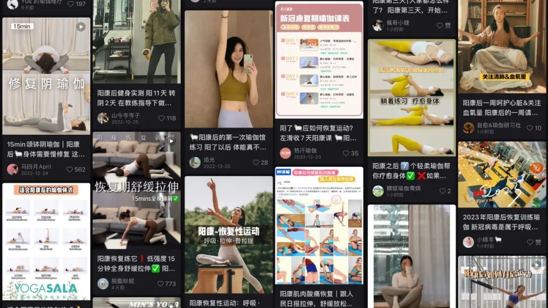 在小红书上检索关键字发现,在呼吸系统改善、身体体能恢复、各肌群肌肉甚至精神压力的放松上,都有受欢迎的瑜伽/普拉提运动指南。