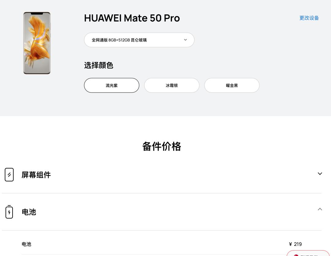 当然不止是小米,像华为、OPPO、vivo等国内厂商也在官网中公布了更换电池的价格,同样以各家的旗舰机型为例,华为Mate 50 Pro的电池更换费用为219元+80元人工费,但值得一提的是,华为还给出了“一口价”的换电池服务,老款机器的电池更换费用最低99元,例如华为Mate10的电池更换费用就是99元,华为Mate30系列的电池更换费用则是129元。