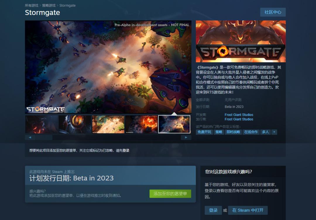 2022年夏日游戏节上,一家名为冰霜巨人(Frost Giant Studios)的初创独立工作室对外公布了处子作《风暴之门》(Stormgate)。如果观看《风暴之门》的宣传片,你会发现它跟《星际争霸》有些相像。这并不奇怪,因为冰霜巨人的大部分成员都是前暴雪开发者。