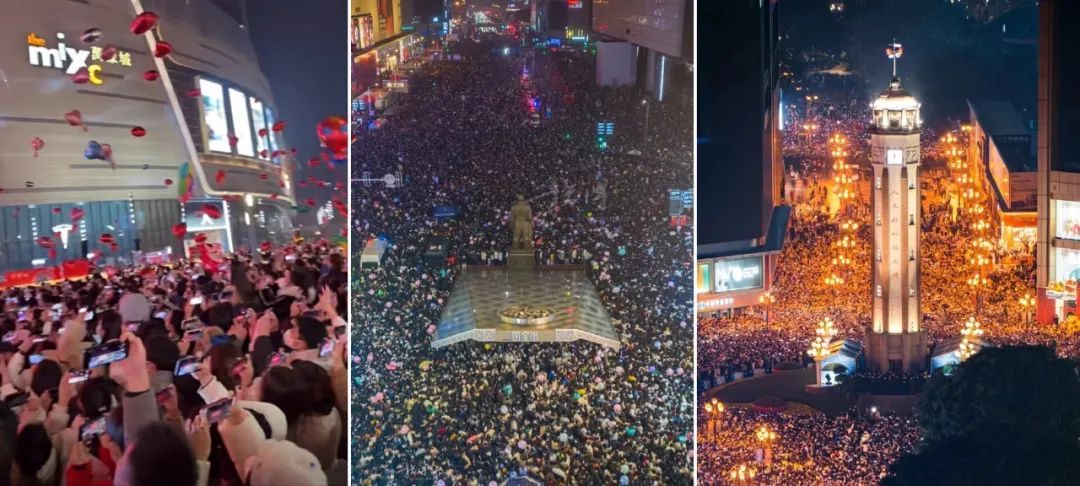 12月31日跨年夜,北京、广州、西安、长沙等多地商圈人潮拥挤,憋了三年的“阳康”消费者们,在新旧更替之际“炸街”。