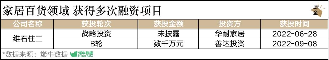 和其他类目不同,家居百货领域在年内多次获得融资的品牌仅有维石住工一家。这是一家整体卫浴数字化服务商,专注建筑内装工业化领域,于6月获得战略投资后,又于9月获得数千万元B轮融资。