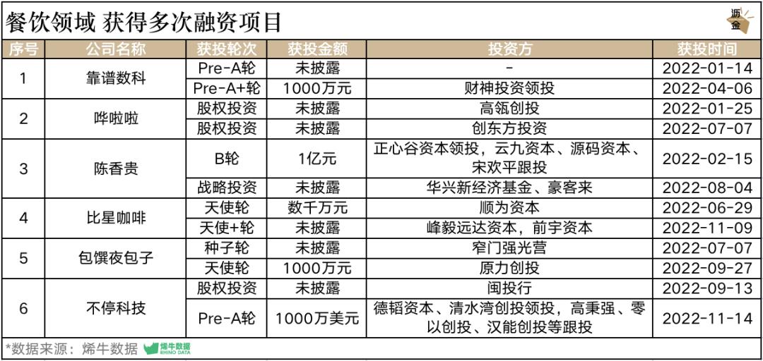 餐饮领域也有部分获得多轮融资的企业。比如,靠谱科技通过多轮融资打造全新的餐饮营销SaaS平台;包馔夜包子也凭借去年的大火不断扩大版图,于7月和9月分别两次获得融资;哗啦啦则在1月末和7月初分别获得两轮股权投资;不停科技和比星咖啡也获得多轮融资。