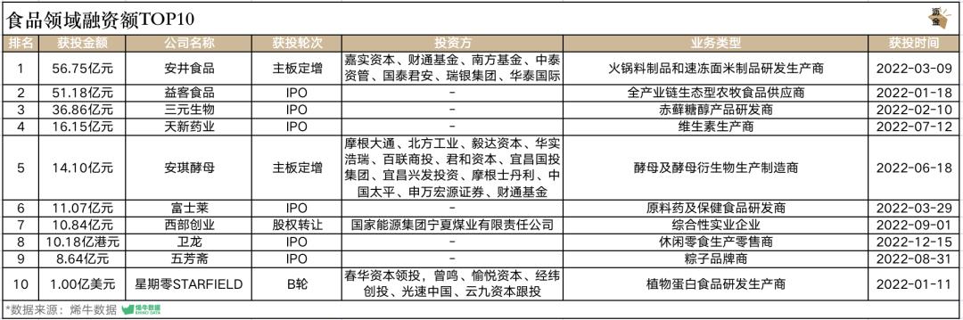 民以食为天,食品赛道在任何时期的热度都不会衰减。纵然在大环境不乐观的局势下,也仍出现了数家融资额过10亿的品牌。