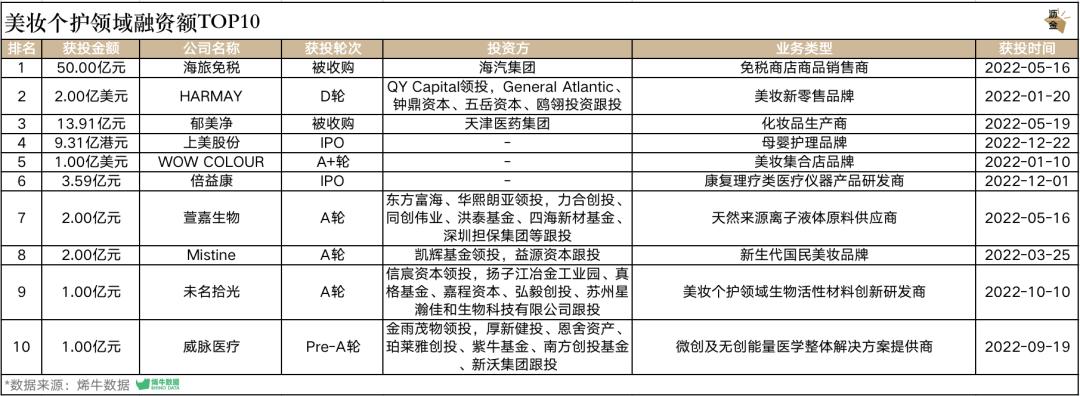 受疫情、行业周期、创新困难等因素影响,美妆个护在2022年的整体热度不及上一年,但也出现了部分大额融资。
