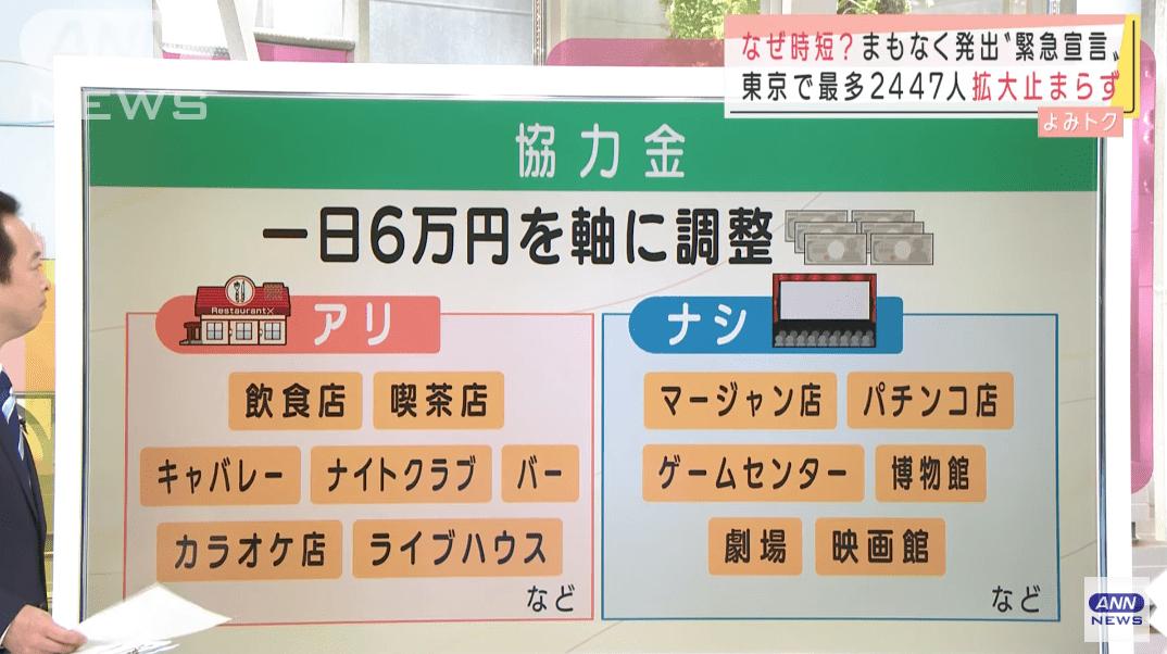 对饮食店造成的损失,政府也会按照“每店每天6万日元”(约3100多块人民币)的标准进行补偿。